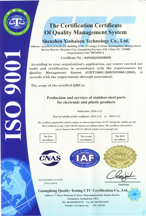 深圳市鑫海森科技有限公司成立于2006年,坐落于中國廣東省深圳市沙井鎮(zhèn),地理位置優(yōu)越,對于我司原物料采購及協(xié)作加工有無法比擬的迅速性和高品質(zhì)性。 我司主要進行精密五金件的加工,產(chǎn)品涉及的范圍相當廣泛,涵蓋了通訊、聲學、光學、醫(yī)療、安防、機械、航空、陸運工具、家電等等領(lǐng)域。本公司目前產(chǎn)能1000^2全自動生產(chǎn)線6條。加工厚度從0.02mm-1.5mm產(chǎn)品的精度可以做到... 【查看詳情】
